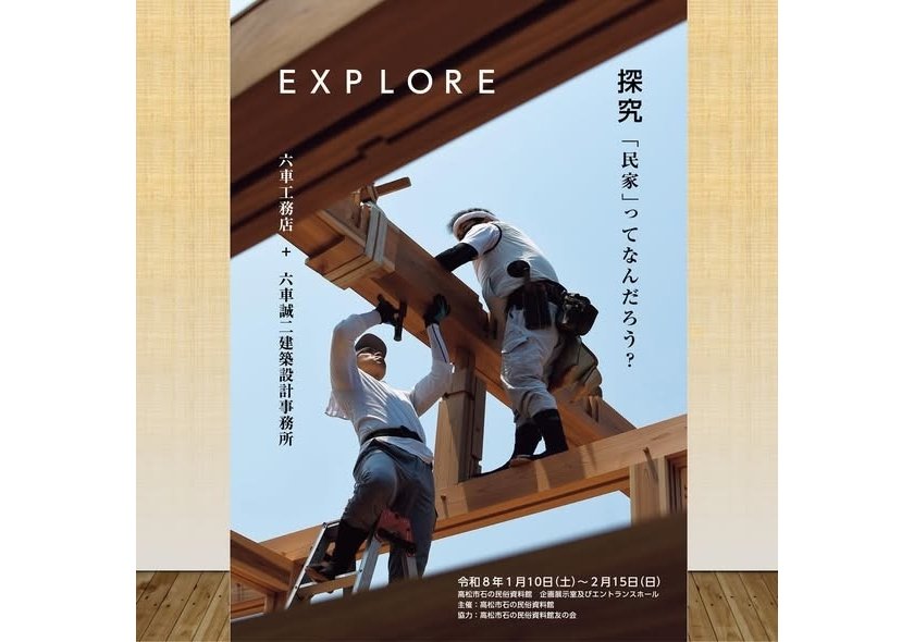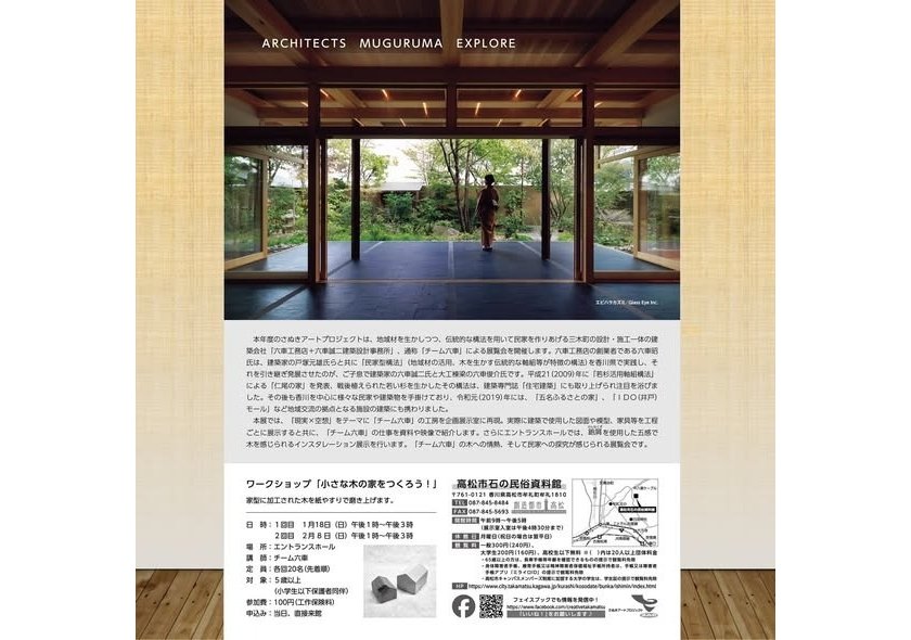 1月10日(土)より、高松市石の民俗資料館では、地域材を生かしつつ、伝統的な構法を用いて民家を作りあげる三木町の設計・施工一体の建築会社「六車工務店+六車誠二建築設計事務所」、通称「チーム六車」による展覧会を開催します。