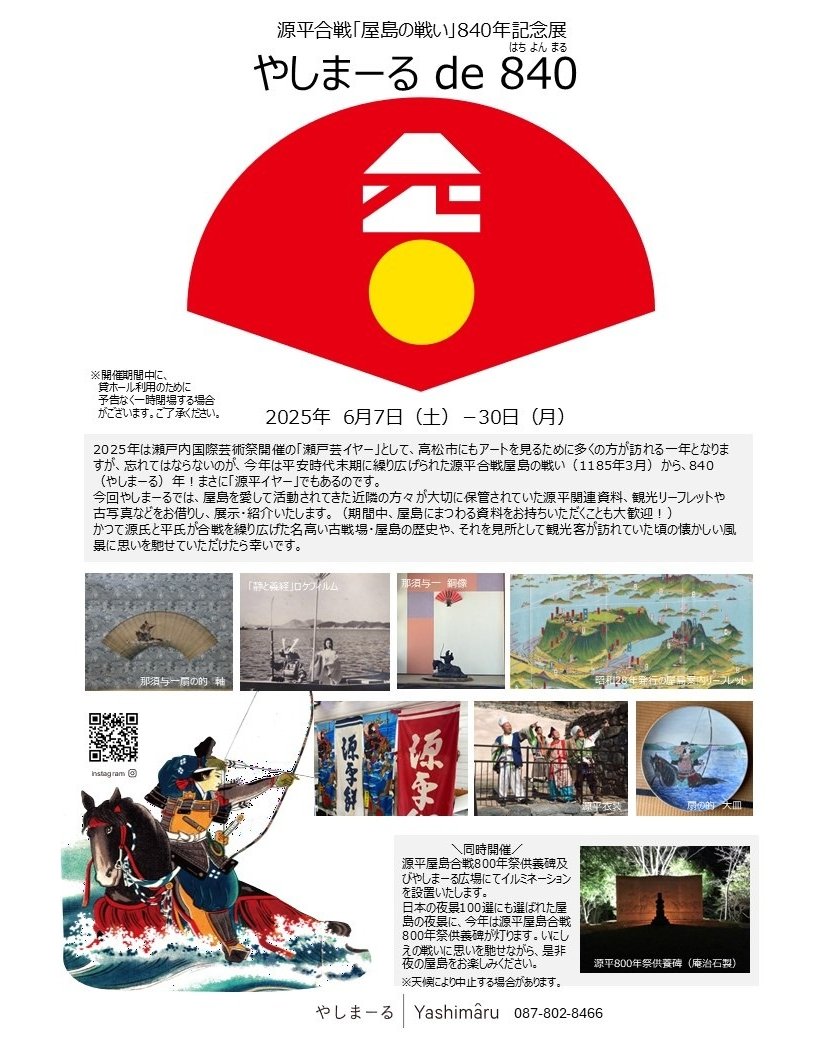 2025年は瀬戸内国際芸術祭開催の「瀬戸芸イヤー」として、高松市にもアートを見るために多くの方が訪れる一年となりますが、忘れてはならないのが、今年は平安時代末期に繰り広げられた源平合戦屋島の戦い(1185年3月)から、840(やしまーる)年!まさに「源平イヤー」でもあるのです。